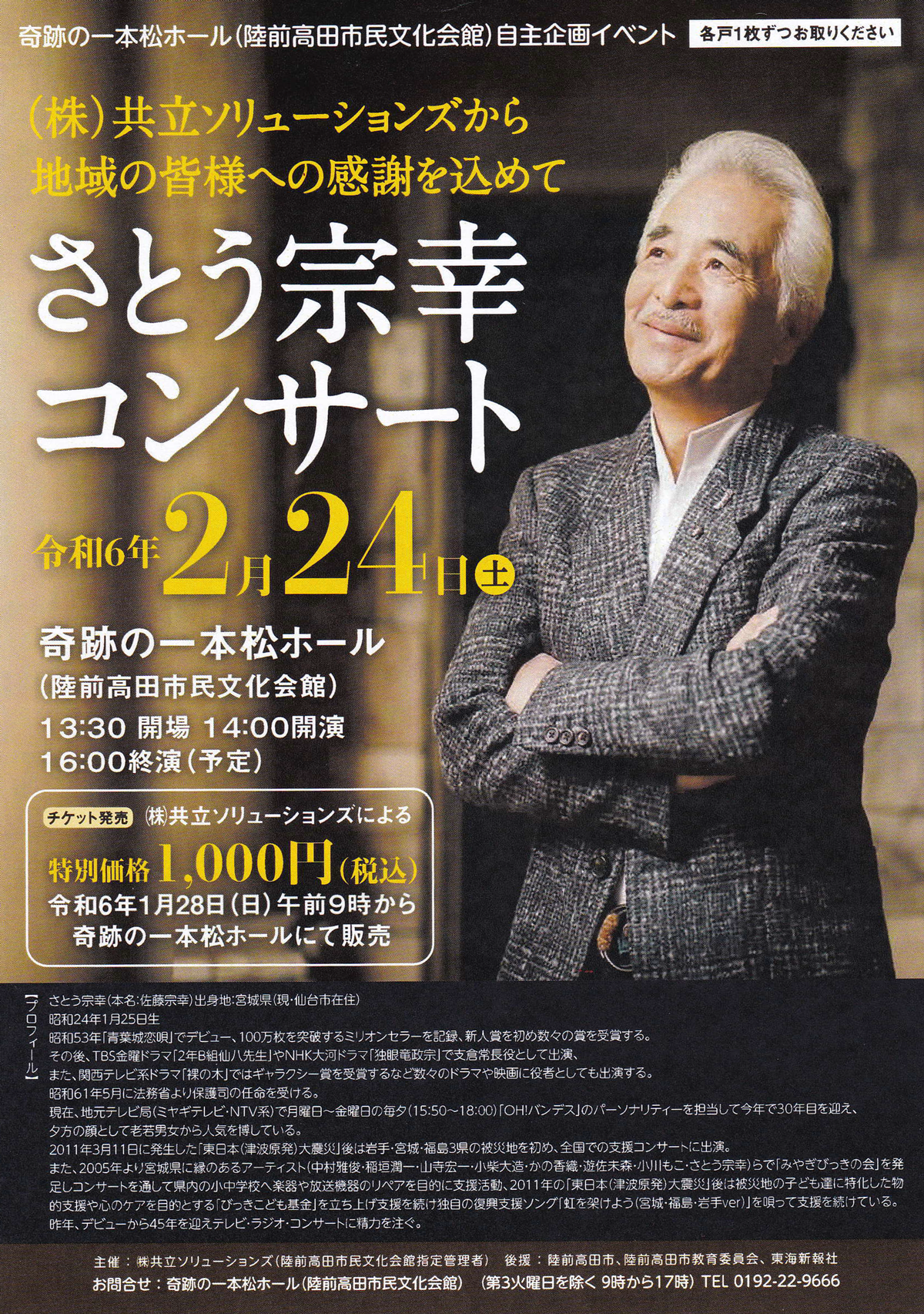 2011年3月11日に発生した「東日本(津波原発)大震災」後は岩手。宮城・福島3県の被災地を初め、全国での支援コンサートにも積極的に出演している。