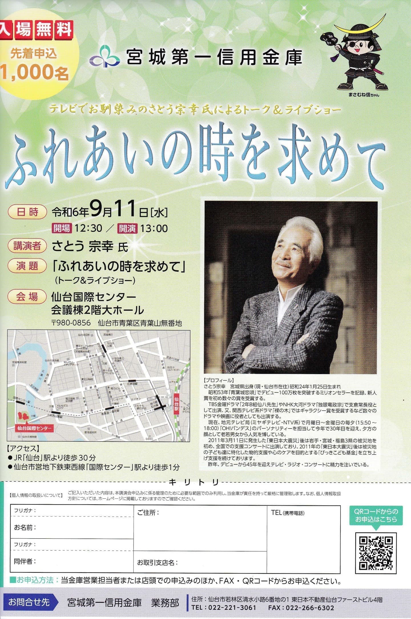 9月最終日まで3ヶ月「宮城つながり応援」キャンペーンのアンバサダー統括を行なってきました。そのキャンペーンソングを作ったSAMURAI APARTMENTが「宮城つながり応援」エンディング曲として「青葉城恋唄」をアレンジし宗さんをフューチャリングアーティストに招き「青葉城恋唄-未来に繋ぐうた-」として11月11日世界発売としてデジタルリリース(CDでの発売はありません)することになりました。是非スマホでダウンロードまたはサブスクで聴いてみてください。